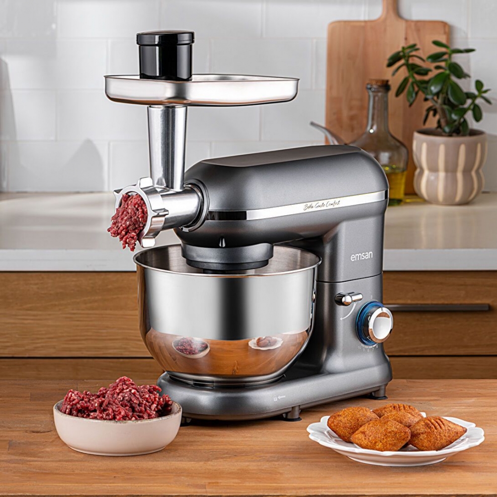 Emsan Bella Gusto Comfort Stand Mikser Gri Mutfak Şefi 1300W 5,5 Lt (Kıyma Çekme Aparatlı)